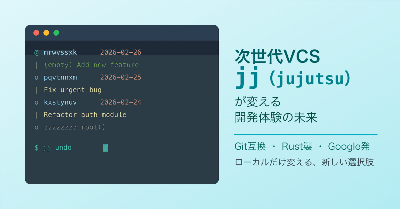 コードを書くことに集中したい──そのシンプルな願いに応えるツールとして、jjは2026年以降の開発体験を静かに、しかし確実に変えていくでしょう。